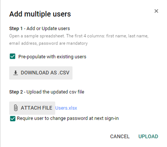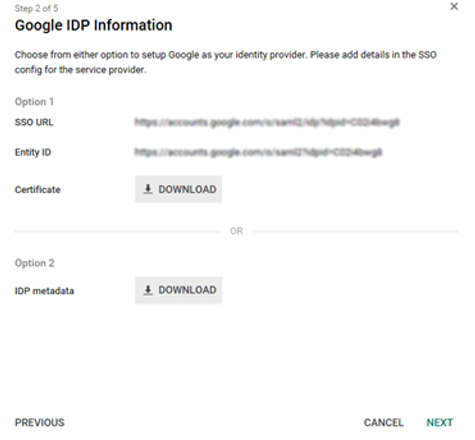 | Upload Certificate | Upload the certificate that you downloaded during the SSO configuration using Google SAML apps. |