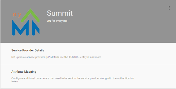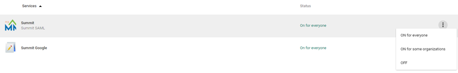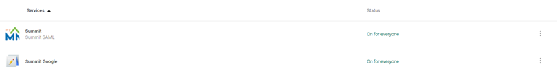 Click SHOW LIST to display the LIST table showing the SSO configured in the SUMMIT application for Google.
