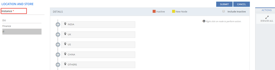 An Instance is a business unit, entity, or a department in an organizational hierarchy. You can create, modify, and specify configuration details of an Instance (see: Configuring Instances). In the SUMMIT application, you can select the label name for Instances based on usage, for example: Department/ Customer or by default Instance. The defined label name is displayed for Instances. Department is used when the SUMMIT application is used by multiple departments within the organization. Customer is used when multiple customers are handled using the SUMMIT application. You can use any other label name based on the organization's requirement.