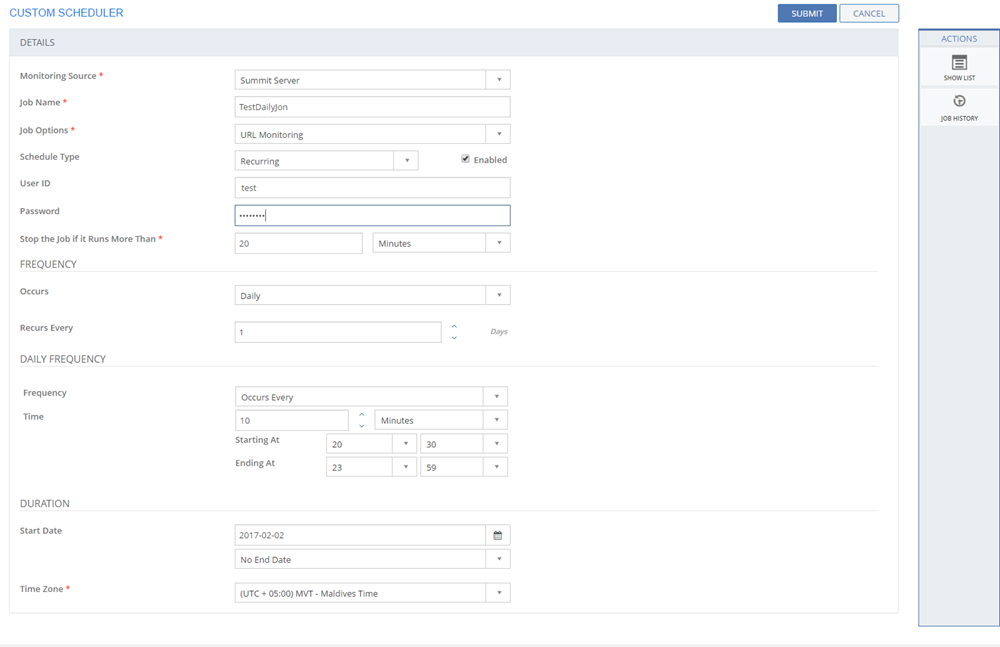 Click SUBMIT. New job for the Custom Scheduler is configured.