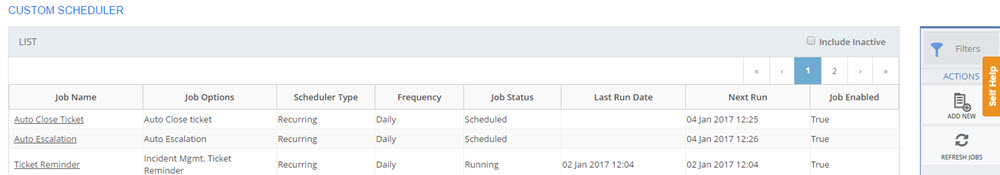 Figure: CUSTOM SCHEDULER page: List of jobs for Custom Scheduler
