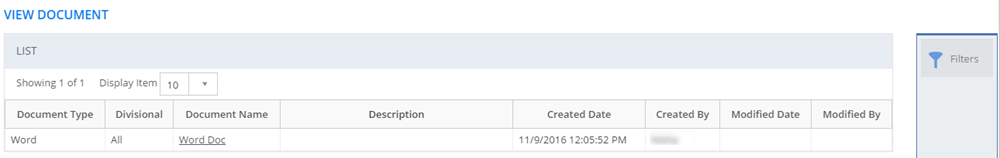 You can view the list of all the published documents. Based on the mapping done between the published documents and the Instance, Customer, and Location, the document list is displayed on the View Document page.